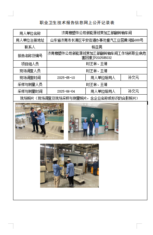 中國重汽集團濟南橡塑件有限公司工作場所職業(yè)病危害檢測報告 JP202505003